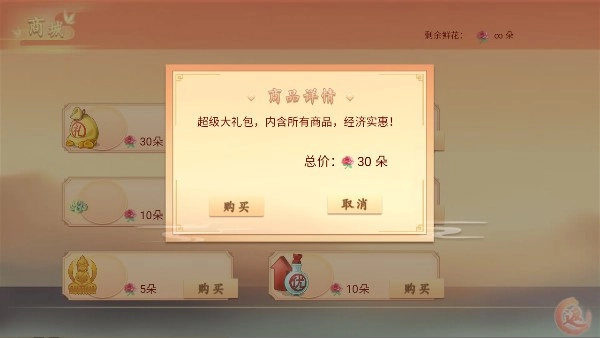 3、接着我们会发现已经达成了无限鲜花的效果,接下来需要先对一系列道具执行购买操作,如此便能体验到完整的内容了。