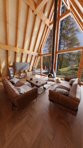 3.透过客厅的玻璃窗眺望外面的群山,景致实在美不胜收。能住在这样的房子里,该是多么惬意啊!