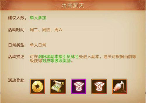 其次就是种族日常以及日常副本了。种族日常没有限制,每天可以完成20轮,奖励种族声望,种族声望能购买装备包,省去了打造装备的麻烦。而日常副本分为水帘洞天和狼王洞窟两种,交替刷新,副本难度不高,但能获得大量的经验奖励和装备奖励,是低级快速获得经验的好去处,最重要的是不用组队。