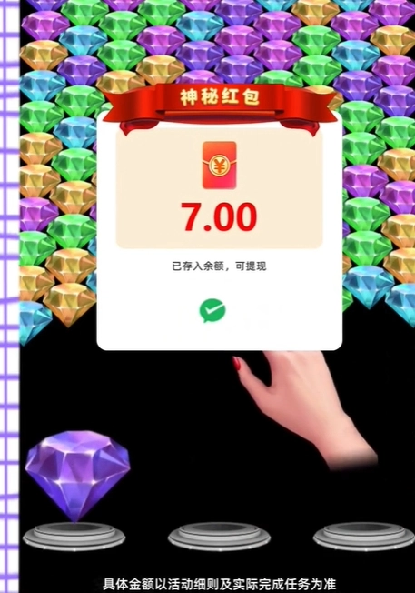 3、操作简便且玩法趣味十足,玩家需通过消除相同的宝石来获取高分与红包奖励。