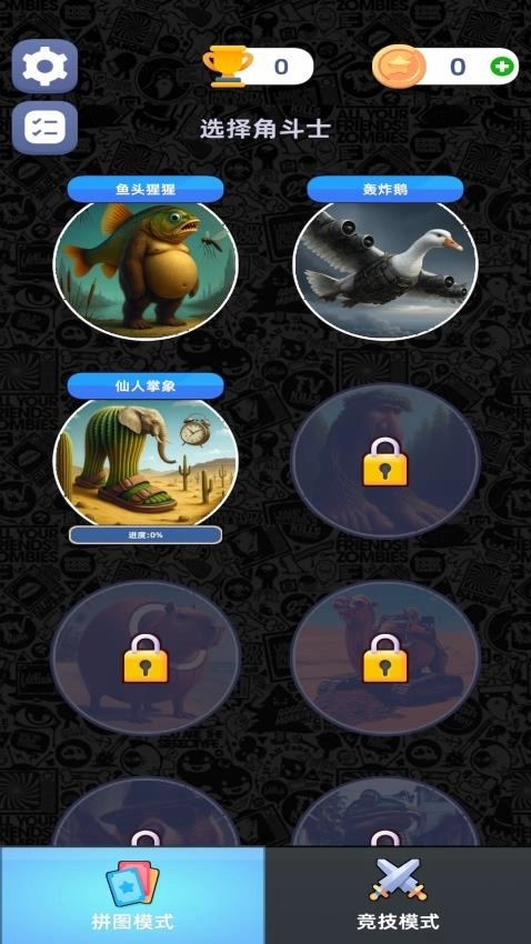 3、进入后点击角斗士图鉴,选择未解锁的角色,查看其拼图碎片的分布情况以及合成所需的条件。