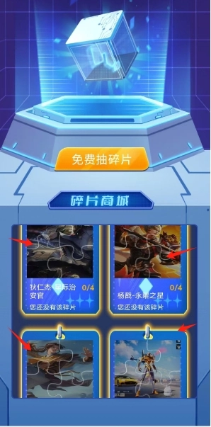 2、进入首页后,点击“抽碎片”按钮即可参与活动,该按钮支持多次点击,每次点击都有机会获得热门皮肤碎片。