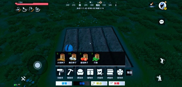 2、接下来打开左下角的建造功能,选择地基,在要种地的区域放置地基。