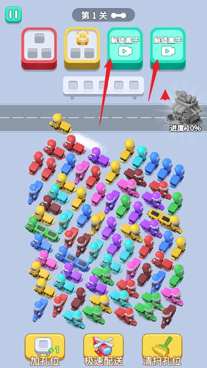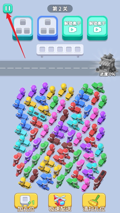 2、这就要求玩家具备出色的色彩辨识能力与策略规划能力,不妨优先专注收集同一种颜色的小人,以最快速度达成消除条件,随后再切换目标处理其他颜色。同时要留意合理运用等候区的空间,防止小人摆放混乱而致使消除任务无法完成。