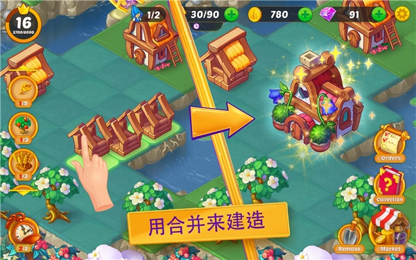 1、除了合并与建造,你还能挖掘石头、木头等更多资源,让你的童话国度愈发富饶。