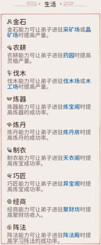 在阵法、炼丹、炼器以及农耕这些领域,只需要安排一位属性值最高的角色来负责就行(这个属性值最好能超过5,当然是越高越理想)。