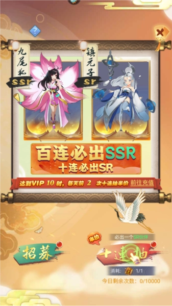 6、修仙途中,你可以挑选伙伴,点击十连抽功能,抽取属于你的修仙伙伴。