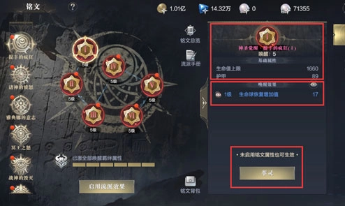 铭文唤醒功能能够提升铭文的基础属性,同时解锁独特的“唤醒效果”。不同铭文的唤醒效果各有不同,有的能增加攻击力,有的则提供血量加成,具体选择哪种效果,就由各位自行决定啦。