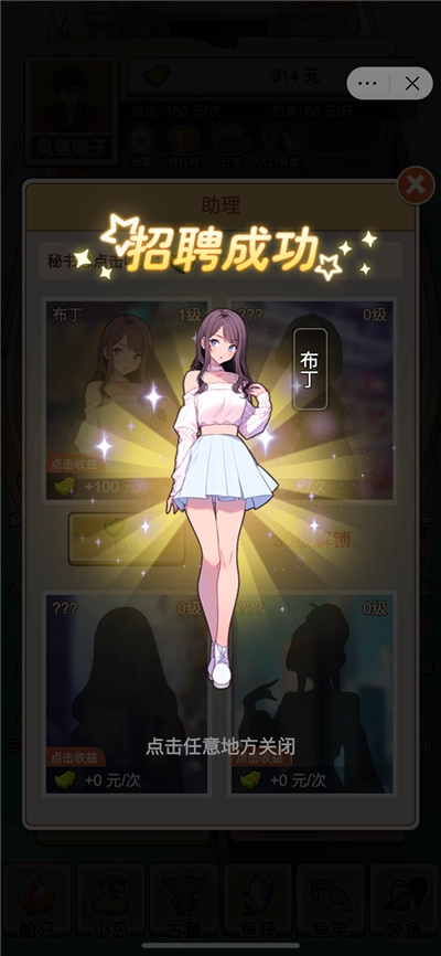 2、招聘员工:玩家点击屏幕上的招聘按钮即可招募员工,这些员工能协助玩家管理鱼塘,提升鱼的产量。