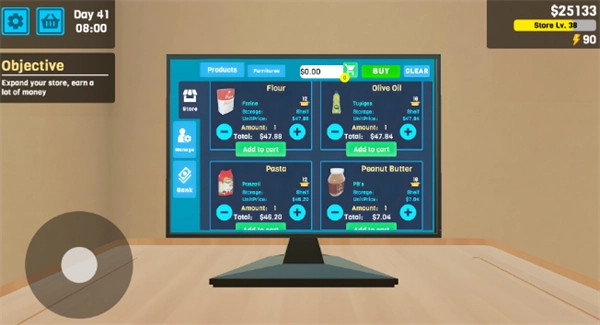 在你的超市模拟器里,要储备各类商品,涵盖薯条、肉类、汉堡、蔬菜和水果等。你可以在网上用实惠的价格采购这些物品,再把它们整齐地摆放在超市的货架上。