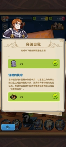 把某只怪兽升到6级,就能在主页看到气球,开启任务得完成三个挑战:天梯战斗、秘境战斗,还有用25积分兑换道具。要注意10级之后才能参加比赛,前期别做没必要的事,专注天梯一路往前冲。