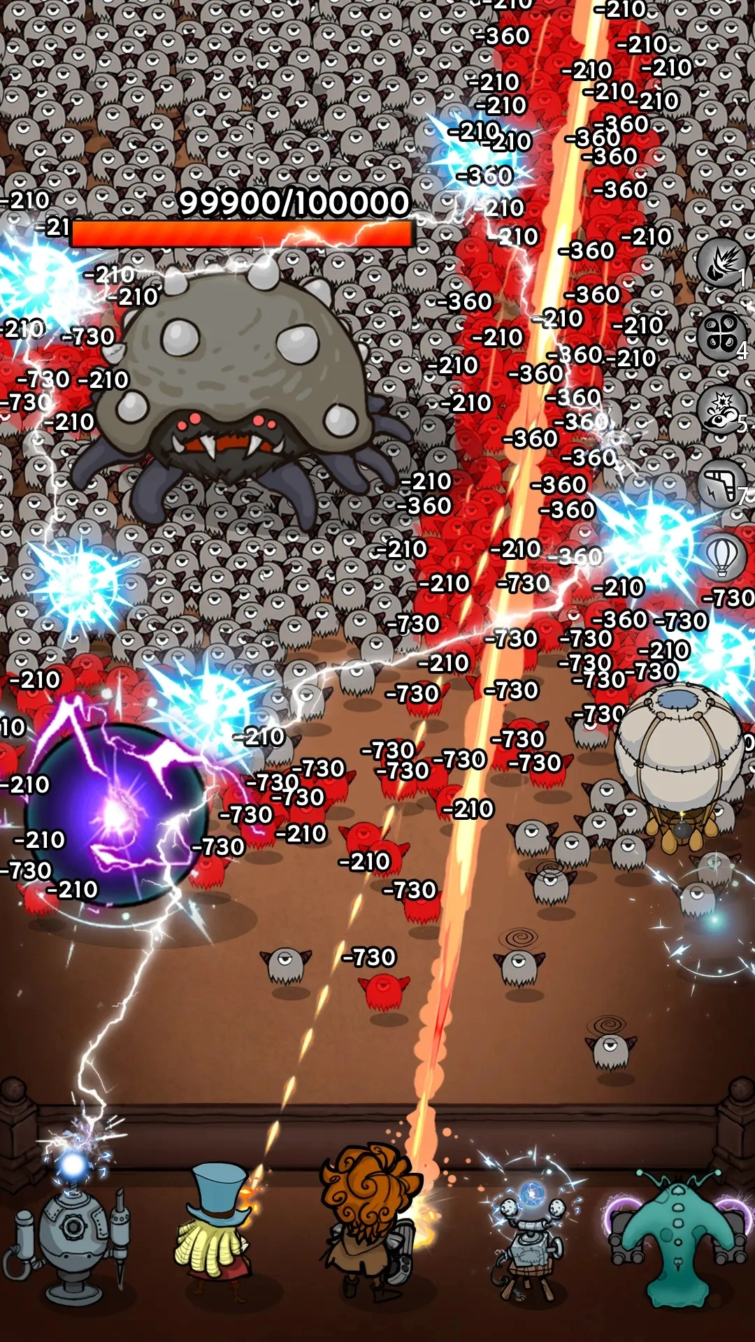 2、队长带领小队击退来袭的生物,核心玩法操作简便易上手,用户只需满足升级条件,从三个技能中选择一个进行升级,并在合适的时机释放大招。