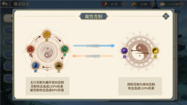 ◆当器灵发起攻击时,若自身属性对目标属性形成克制关系,其造成的伤害将提升至原来的120%。