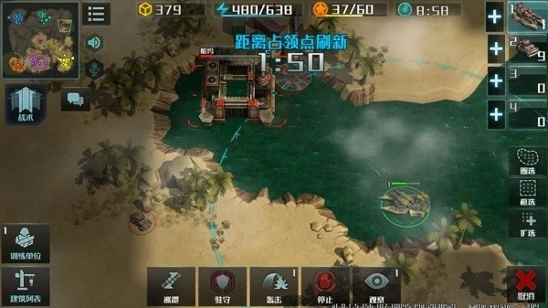 4、船厂发展节奏:在八分前升级至二级船厂,建造四艘二级舰船;前期依旧需要地面部队负责守点和抢箱,后续再实施海陆协同夹击的战术。