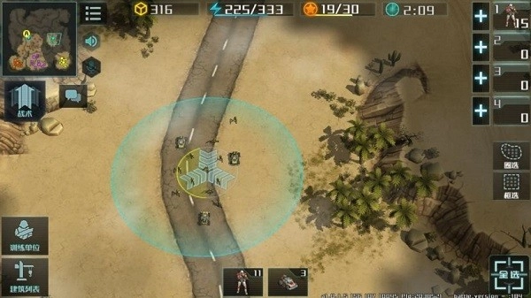 1、开局阶段的协商:快速建造电厂、补给中心、兵营和车厂后,与队友明确海陆空各方面的分工,确定中后期的进攻方向。