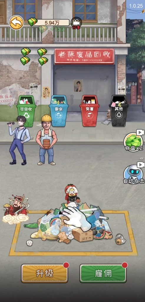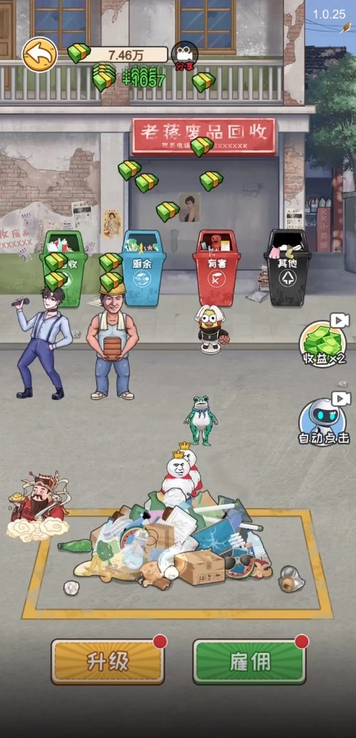命运挑战是一款既刺激又有趣的逆袭小游戏,能让你体验从破产到成功逆袭的惊险历程。在这个游戏里,你需要不断点击屏幕,翻找垃圾桶来寻找各种隐藏的宝贝。每次点击垃圾桶,都有机会得到钞票,让你的财富慢慢积累起来。