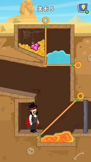 3、游戏玩法很简单,玩家只需通过拔销的方式来闯关,结合场景中的元素逐步推进即可过关。