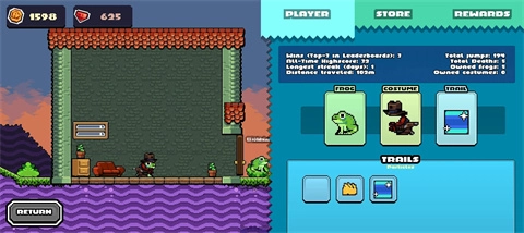 您可以用其他玩家都能看到的各式皮肤、服装和轨迹来定制您的青蛙!每天在排行榜上跻身前五名,就能收集到奖励。