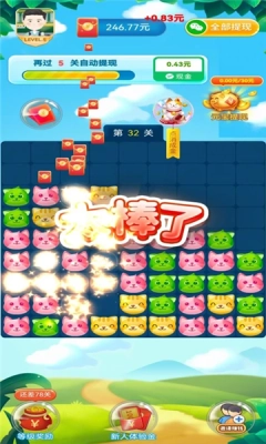5、每通过一关就能得到各类奖励。玩家得在游戏里连接相同的道具把它们消除,这样才能获取奖励和红包。