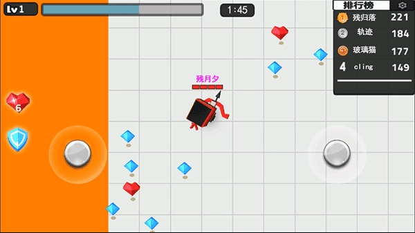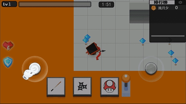 在对局过程中会随机出现各类道具,若拾取到“爱心”,角色的生命值就能恢复至满值;而“护盾”道具能够帮助角色抵御敌方的3次攻击。