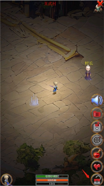 2、移动人物往上方走,来到村长身边