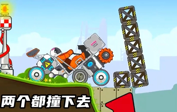 12、再往前开就能看到本关最难的一个地方,得把两个架子一路往前撞,让它们落到坑里才能通过。