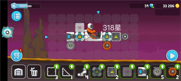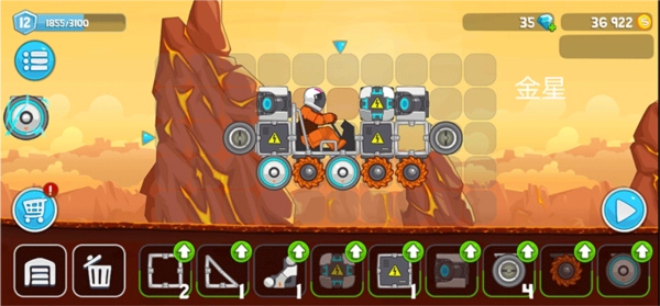 每一关都有独特之处:有的星球没走几步就会遇到岩浆池,会损坏你的车体;有的星球山地崎岖,还得攀爬巨大的斜坡,途中既要把控速度,又不能忽略能耗;有的关卡需要轻便的车体,同时还得具备极高的速度,简直是为高手量身打造;甚至还有的星球处于失重状态,考验着你设计的车辆性能以及你的操作技巧。