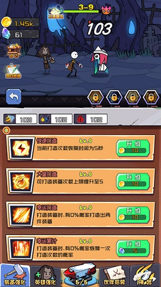 2、持续合成新装备,提升自身实力,借助先进装备战胜更强大的敌人。