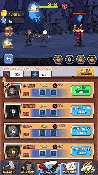 3、点击“伙伴招募”获取新伙伴,将其升级后,强强联手击败黑暗势力。