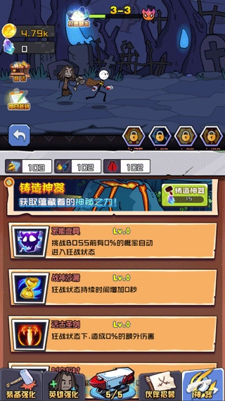 5、点击“神器”,消耗钻石打造更强大的神器,轻松秒杀大boss。