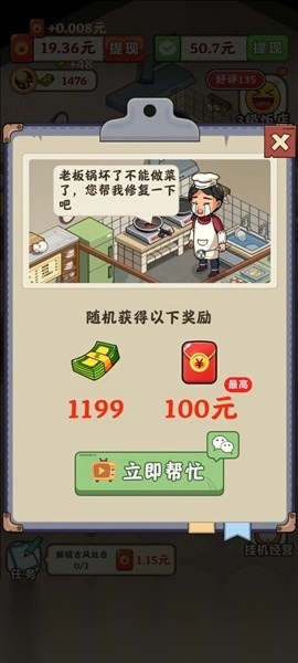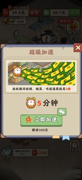 1、玩家可以通过招揽顾客、制作菜品来赚钱盈利。
