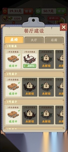 当积累的金币和口碑值达到一定数量时,就能实现升级,进而解锁更多菜系、扩大经营区域,还能开启高级订单以提高收益上限。