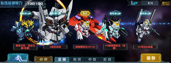 在游戏中,身为队长的敢达、敢达Z与敢达ZZ会拥有各自专属的队长技能。