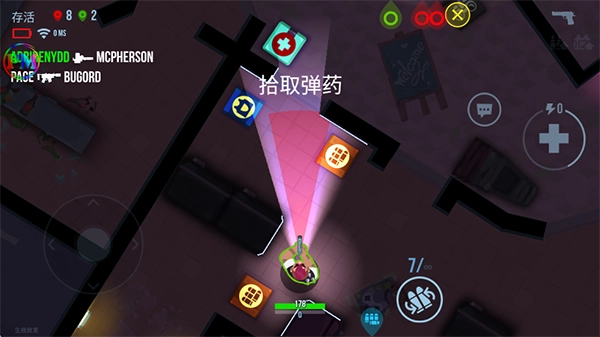 游戏采用俯瞰视角,玩家可通过左手摇杆操控角色移动,右手按键则用于执行换弹、治疗等功能。整体操作较为简便,对新手十分友好。
