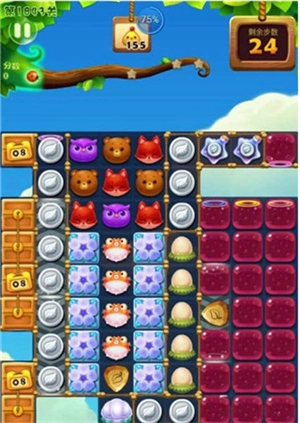 【玩法】用手指滑动屏幕,让三个或三个以上相同颜色的小动物在横向或纵向连成一线,就能将它们消除;达成每一关规定的消除任务,就能顺利通关。