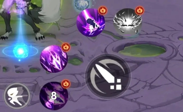 战斗时,各位灵师大大要留意战斗界面右侧的技能释放区域,每个技能的右上角都有一个标记。