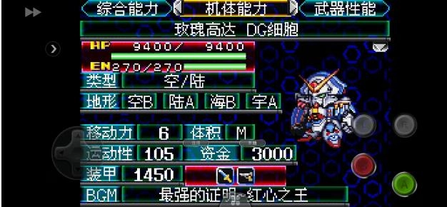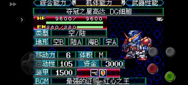1、于第16话亮相,由DG奇波迪操控。这四台DG化的高达每回合会恢复10%的HP与EN,所有武器的攻击力均比常规状态高出200点。机师的气力每提升10点,其六项基础能力便各增加2点。其余细节在此就不展开详述了;