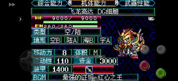 3、该机体于第16话登场,驾驶者为DG蔡斋西。其DG化技能“飞龙烈焰”不会削弱我方机体的武器攻击力,这或许是制作过程中出现的疏忽。