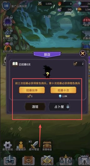 1、进入游戏后通过旅馆系统抽取角色,前期建议把抽卡资源集中用来获取强力的传说英雄。