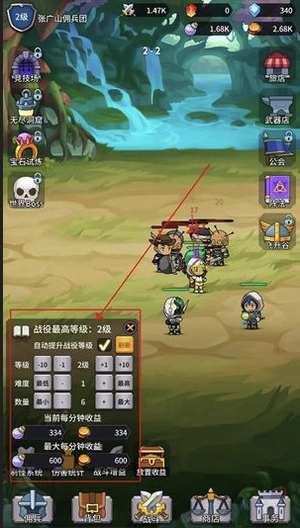 4、推进关卡时,优先完成通关以获取资源,之后再调整刷怪系统的难度,通过刷取最大经验值来提升角色等级。