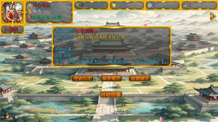 7、在招贤阁里,能够招募来自各方的强大三国武将,以此壮大自己手下的阵容。