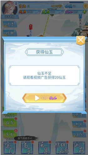 接下来就是看广告了,这是普通玩家获取仙玉的关键途径,每次花30秒看广告就能获得20点仙玉,想刷仙玉的玩家可以多观看一些广告。