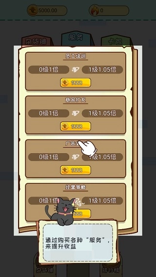 4、另外,“商城”里除了商品外还能购买服务,你可以点击“服务”界面,选择并购买所需的服务,以此来提高杂货铺的收益。