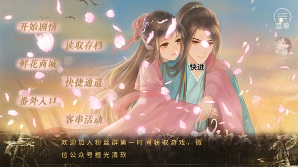 2、接下来我们可以点击右上角的菜单功能,然后选择存储档案、读取档案、环境设置、好感羁绊、鲜花商城等多个功能。