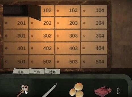 13、点击开启挎包,使用【101室邮箱钥匙】打开101号柜,从中获取【春联】。14、向左移动,进入101室。