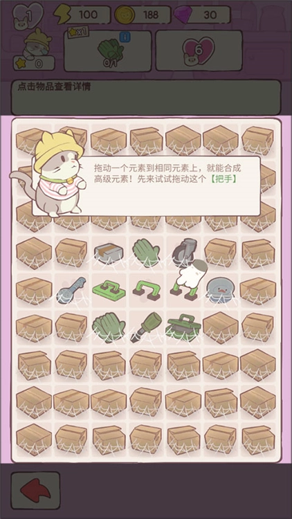 2、你需要将相同的物品放一起,能形成新的物品。