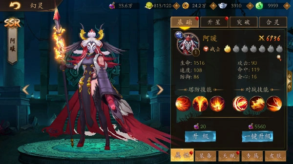 在四个灵石都镶嵌完毕后,点击中间的属性提升按钮就能增强幻灵的实力。当幻灵达到相应等级时,还可以学习下方的技能,不过学习技能需要消耗对应数量的材料。另外,幻灵的技能分为PVE和PVP两种类型,前期合理规划学习哪些技能,能让你在关卡挑战和武神擂台中都更具优势。