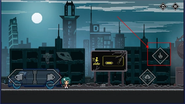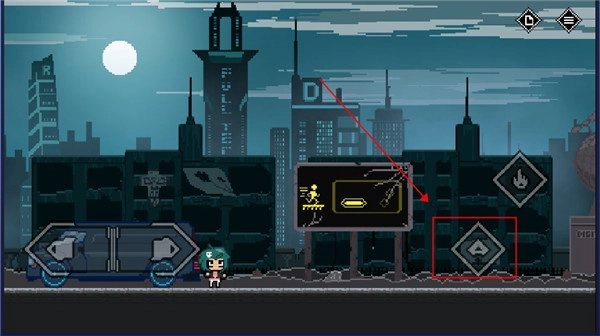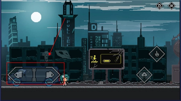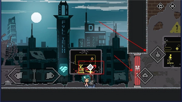 5、遇到禁止通行的大门,不能直接通过,得找到开关并点击攻击。这扇门需要走到红框标注的位置,同时按下跳跃键和攻击键才能打开。