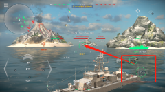 5、当发现地方战舰后,我们能够通过滑动屏幕来调整武器的瞄准方向,点击下图所示的位置就能快速使用武器进行开火射击。