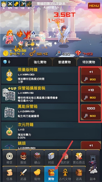 2、玩家击败怪物后,掉落的钥匙可以进行宝物升级。